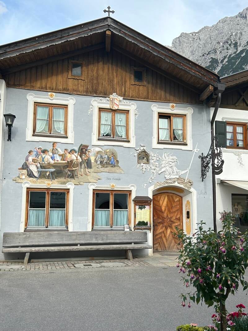 Yesterday evening I managed to find the Pink Church (I've attached a photo). See some brightly coloured houses (they were lovely), sampled some of the local food, it was delicious ๐. Oddly I didn't see much in the way of violins ๐ป . I did see lots of shops selling Lederhosen!!
