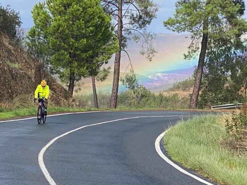 The morning was delightful as we followed the edge of the National Park, riding along long, straight, undulating roads. A few climbs warmed us up before we enjoyed a pleasant lunch stop. Right after lunch, we tackled a steady 9.5 km climb (not too harsh!) that rewarded us with an exhilarating descent all the way to the coast in Tavira. The ride was nothing short of spectacular. We regrouped at a café just outside Tavira, and together, all 24 of us cycled down to the beach. It was an emotional and unforgettable moment.